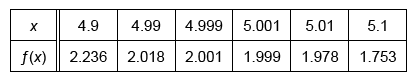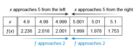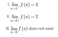 As x approaches 5 from the left, the values of f in the given table also get very close to 2. Both limits of f approach the same value as x approaches 5, so exists. Therefore, Statement III is false.