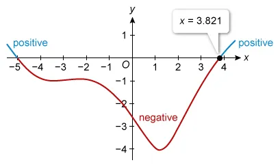 Integrate the difference between the functions on the interval of their intersection points to find the area of region R.