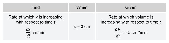 To find an expression for the area function , plug into the formula for the area of a square to get . Substitute , , and into the volume integral to get .
