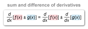 The derivative of the sum or difference of two or more functions is equal to the sum or difference of their derivatives.
