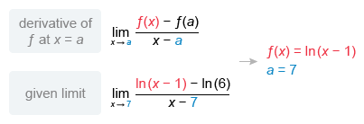 A limit of the form is the definition of f '(a), the derivative of a function f(x) at x = a.