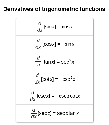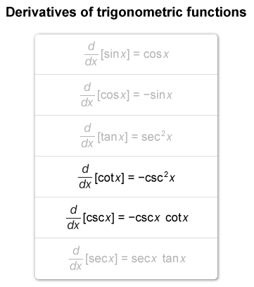 | Differentiate cot x and apply power rule | |