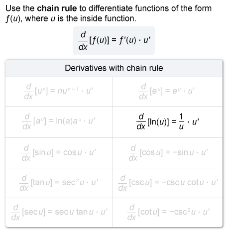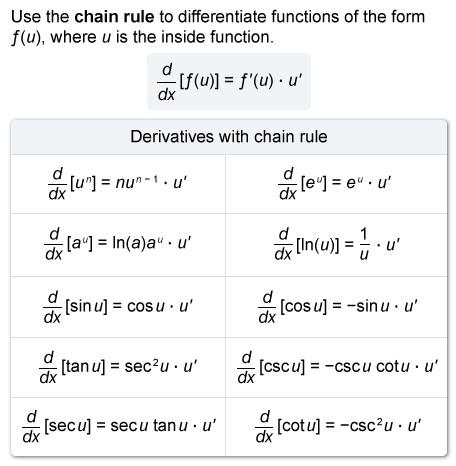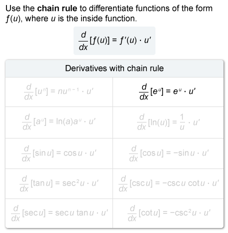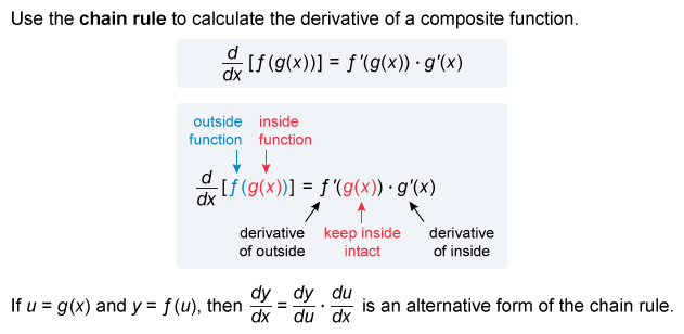 - To differentiate a composite function, use the chain rule: