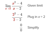 - To evaluate a limit of the form first try directly substituting x = c into the function. If direct substitution yields the indeterminate form , simplify the expression or apply L'Hospital's Rule.