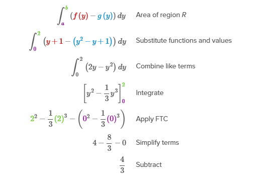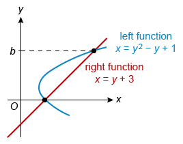 Therefore, the right function is f(y) = y + 1 and the left function is g(y) = y2 − y + 1, and they intersect at y = 0 and y = 2.