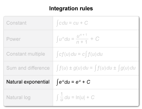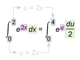 | V = 1/2 ∫04 eu du | Resulting integral |