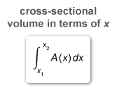 The volume of a solid with cross sections of area A(x) perpendicular to the x-axis is given by a definite integral of A(x) in terms of x.