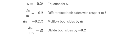 The integrand is a composite function of the form , where , so rewrite the integral in terms of u. The derivative of is , so solve for . Plug the limits of integration for in to get 0 and 4.