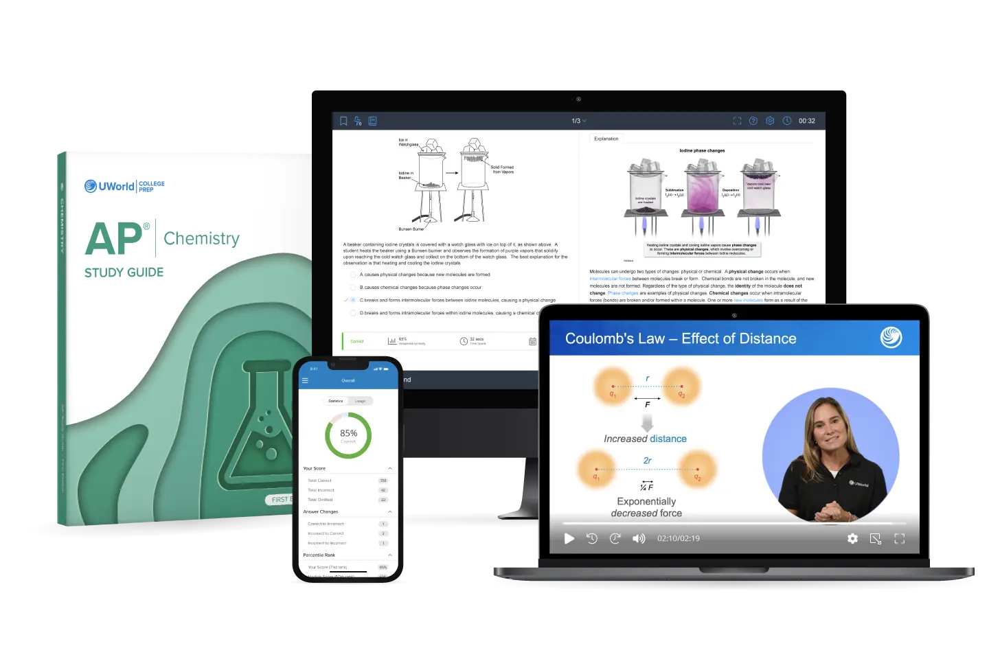 Tackle AP Chemistry Unit 8 practice questions on the go, watch quick acid-base videos between classes, or review buffer concepts while waiting for friends. With the UWorld app, your complete AP Chemistry acids and bases review is always at your fingertips. Whether you’re preparing for AP Chemistry Unit 8 FRQs or reinforcing key acid-base concepts, study anytime, anywhere, and stay consistent all the way to exam day.