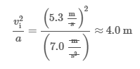 Thus, the ratio of vi2 to a must be approximately equal to 4.0 m (i.e., Δx is 2.0 m). Furthermore, because friction acts against the block's motion, the magnitude of a must be greater than the component of gravitational acceleration, which also acts against the block’s motion: