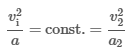 Consequently, the ratio of the square of vi to a is always constant for the same length Δx. Thus, a proportionality can be established: