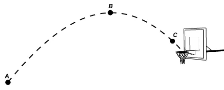 However, the ball does not reach the initial vertical speed value until it returns to its starting height. Therefore, its speed at point C is smaller than its velocity at point A.