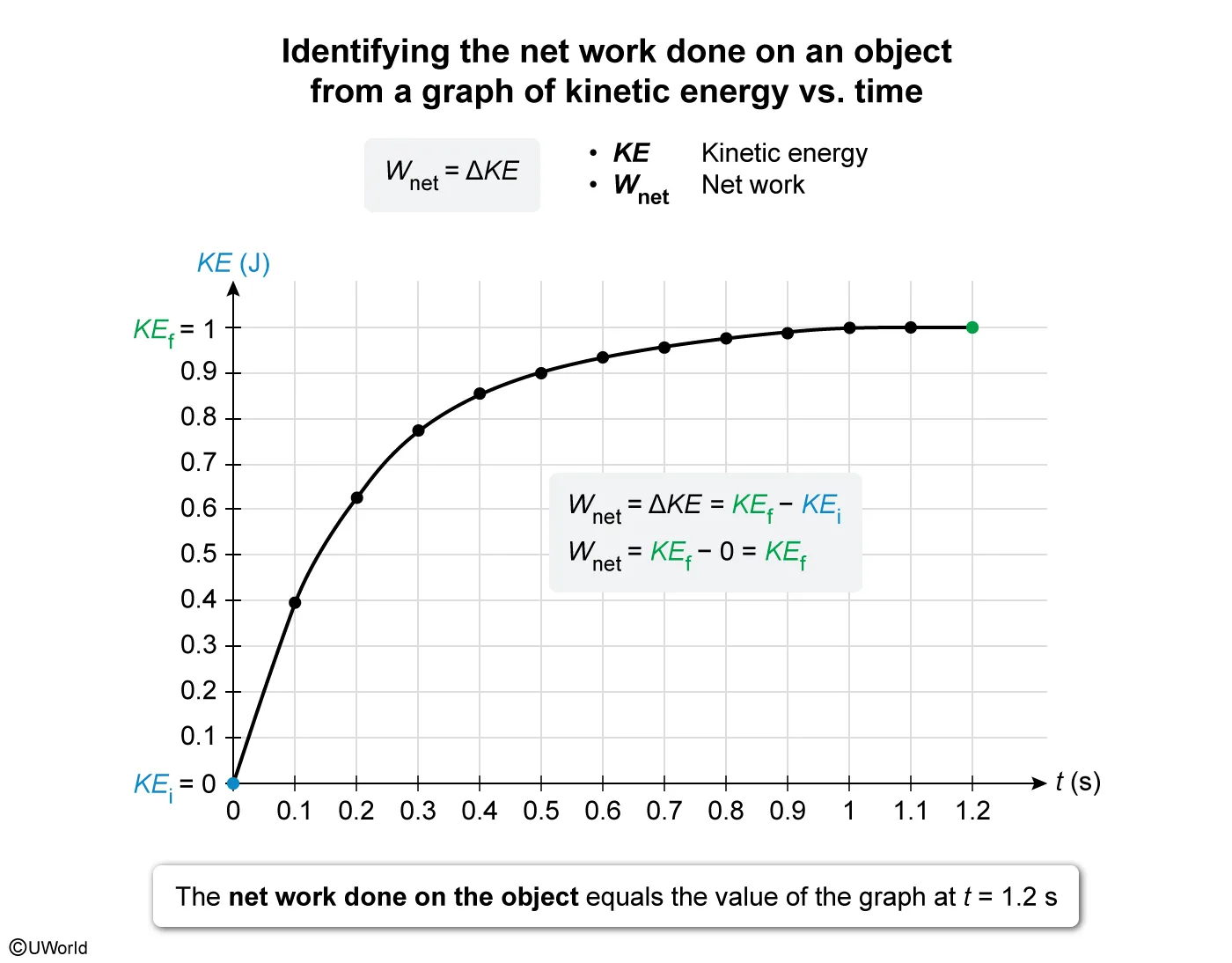 Therefore, the net work equals the value of the graph at t = 1.2 s (ie, the final kinetic energy):