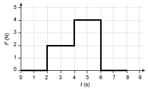 Next, from 4 s to 6 s the force increases to 4 N and the block moves 4 m: