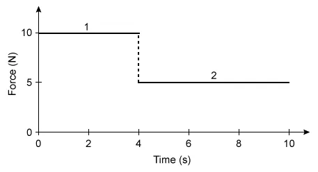 A student measures the force exerted on a 0.5 kg lab cart with respect to time in two different sections, as shown in the graph. During which of the two sections does the lab cart experience a greater change in momentum?