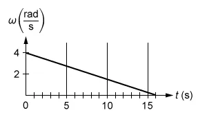 In this question, the angular speed of a wheel on a toy car is plotted as a function of time. The toy car is released with an initial angular speed of and travels a total distance of 2.00 m in 16.0 s before slowing to a stop.