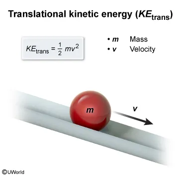 Furthermore, because the block is in translational motion with velocity v, it has translational kinetic energy (KE):