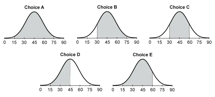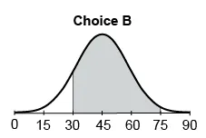 The question asks which scatterplot has a correlation closest to 0 (r = 0), which describes data with no linear relationship. Eliminate Choices A, B, C, and D because they show a linear relationship.