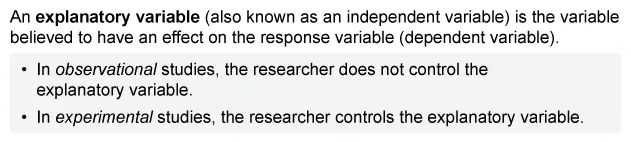 Note: If the mean of the response variable is constant across the values of the explanatory variable, then the slope is zero (no linear relationship).