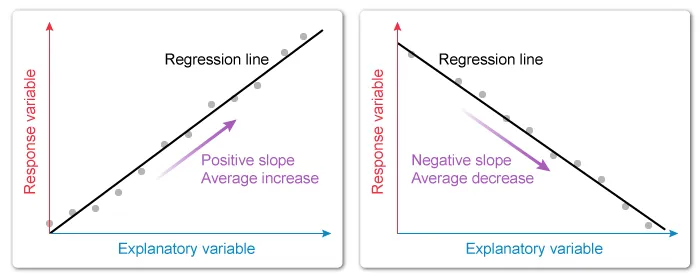 - The slope of a regression line is the average change in the response variable per unit increase in the explanatory variable.