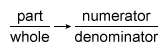 A proportion in fraction form represents a part (numerator) of a whole (denominator):