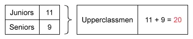 To find the part, add together the number of juniors and seniors (upperclassmen).