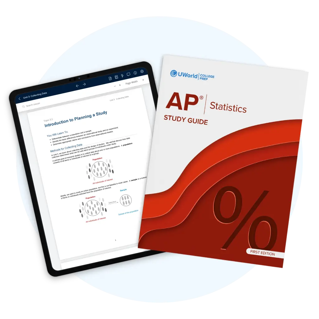 Be ready to learn planning, conducting, and interpreting data collection with UWorld’s comprehensive AP® Statistics Unit 3 review. By mastering sampling methods, survey design, and producing unbiased, valid results, you’ll gain confidence and clarity to answer AP Stats Unit 3 FRQs. Our all-in-one prep solution brings engaging videos, interactive study guides, and realistic AP-style practice tests, so you ace the unit and get closer to scoring 5.