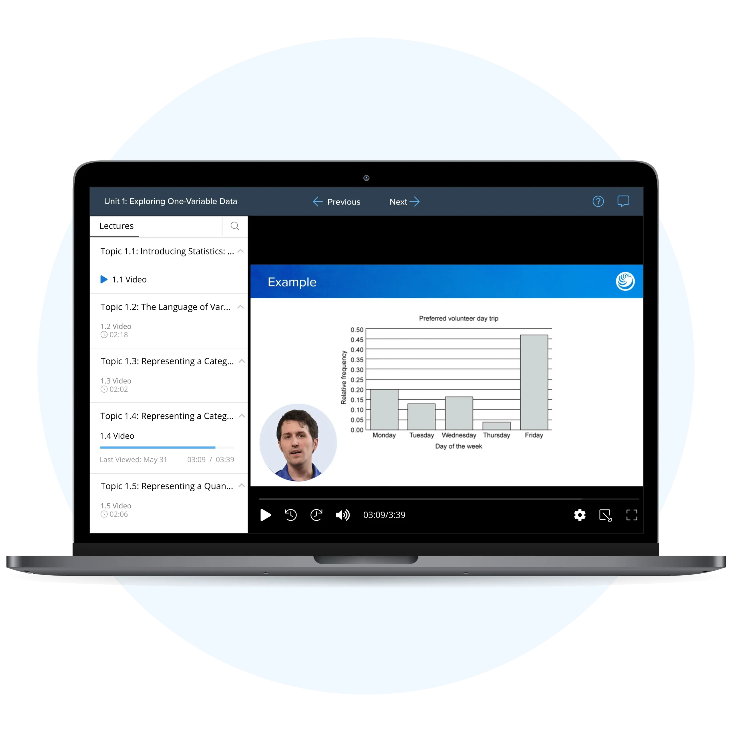 UWorld’s AP Statistics Unit 3 resources don’t just prepare you for the exam, but give you clarity beyond the unit to develop critical thinking and problem-solving across units. With in-depth explanations, practice tests, and engaging videos in an integrated platform, your prep gets a substantial boost.