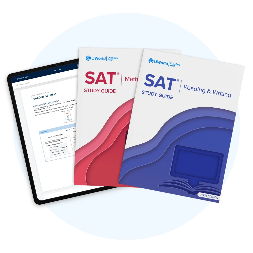 Reach your full potential on the SAT® exam with UWorld’s comprehensive SAT test prep resources! Our proven online prep for the digital SAT includes engaging videos, extensive exam-like practice questions, step-by-step answer explanations, and both physical and interactive online study guides.