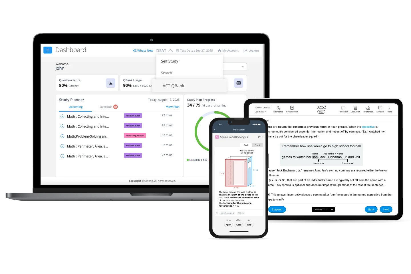UWorld’s question bank is extremely satisfactory to my needs as a digital SAT test-taker! It helped me in both the mathematics and writing sections. I also went from getting almost 47/58 in math to an all-time flawless math score. I’m vastly grateful for this product.