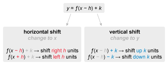 For any function f(x), the graph of y = f(x − h) + k is the graph of y = f(x) transformed by a horizontal shift of h units and a vertical shift of k units.