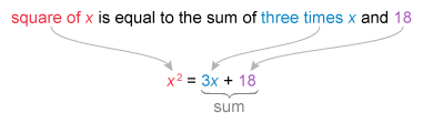 Now build the expression on the right. The phrase "more than" means addition, and the phrase "times" means multiplication.