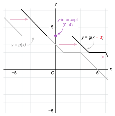 The graph of y = g(x − 3) crosses the y-axis at 4, so its y-intercept is (0, 4).