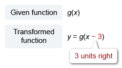 Therefore, the graph of y = g(x − 3) is the graph of y = g(x) shifted to the right 3 units. This means every point on the graph of g(x − 3) is 3 units to the right of every point on the graph of g(x).
