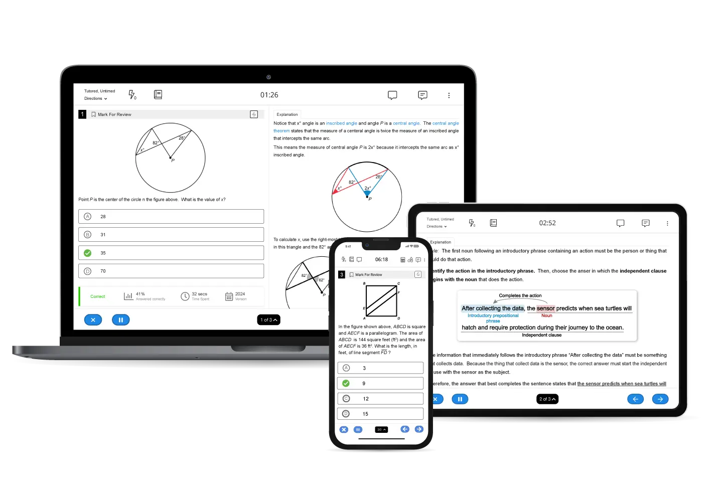 Want to know your SAT score before test day? Our full-length SAT mock test tells you exactly where you stand and what you need to work on: no guessing, no surprises. Available exclusively in our SAT Prep Course, this Digital SAT mock exam is as close to the real thing as it gets, from the interface you'll use to the questions that match every difficulty level you'll face