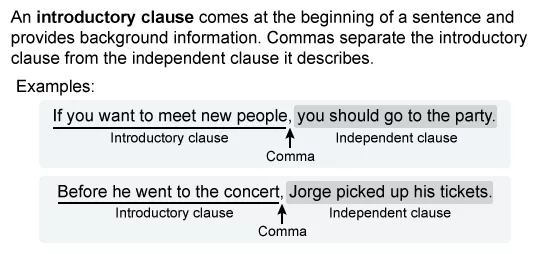 Use a comma to separate an introductory dependent clause and the independent clause that follows it.